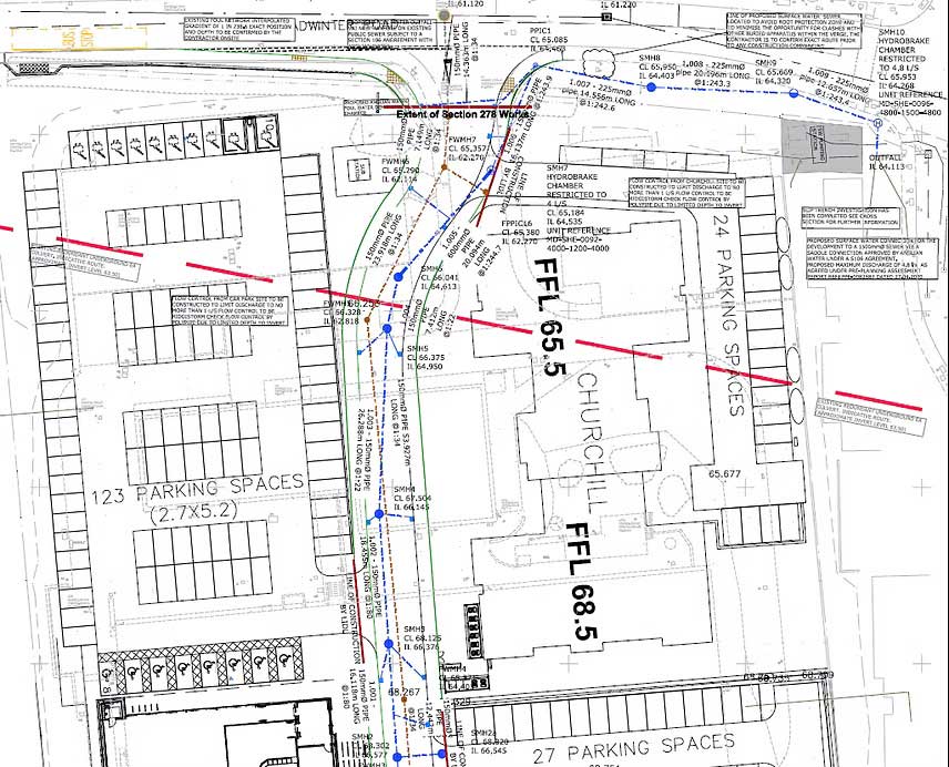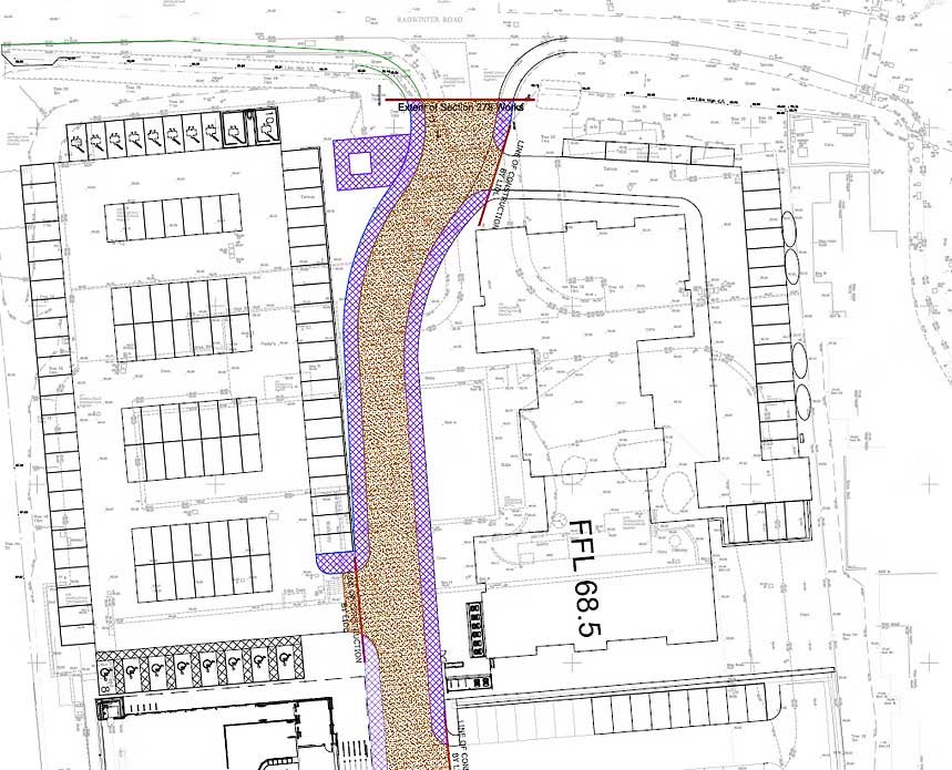 - Significant cut and fill earthworks, S278 works, public roads and footpaths, surface and foul water drainage.