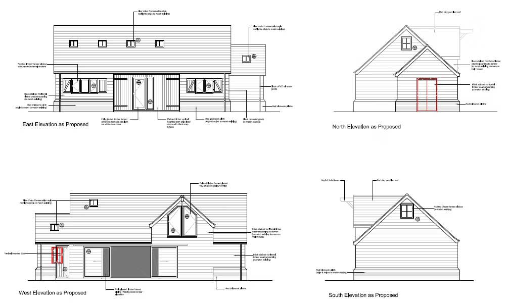 - Alterations to the existing cart lodge structure to facilitate a new enclosed ground floor living area with lower level Golf simulation room.